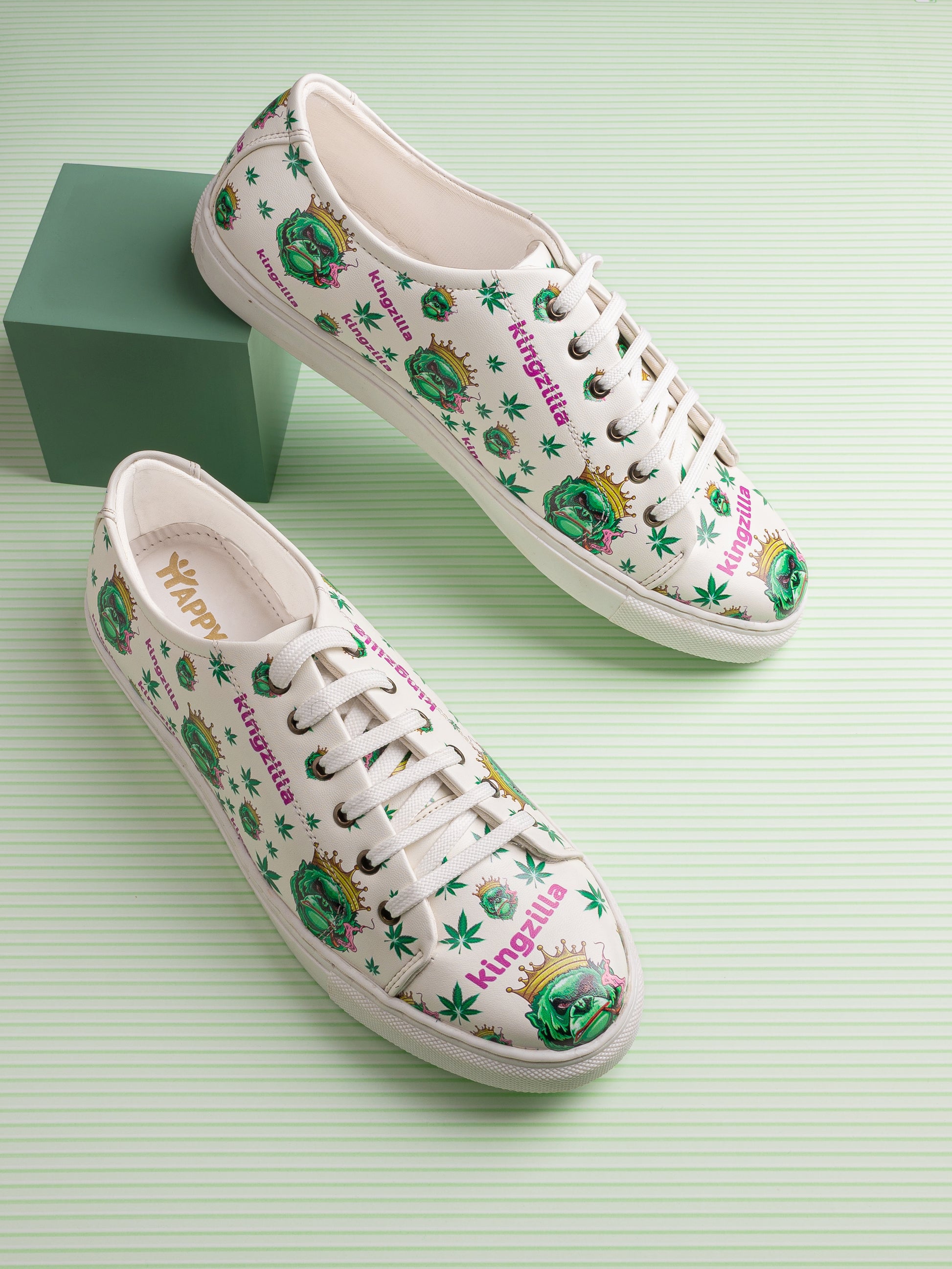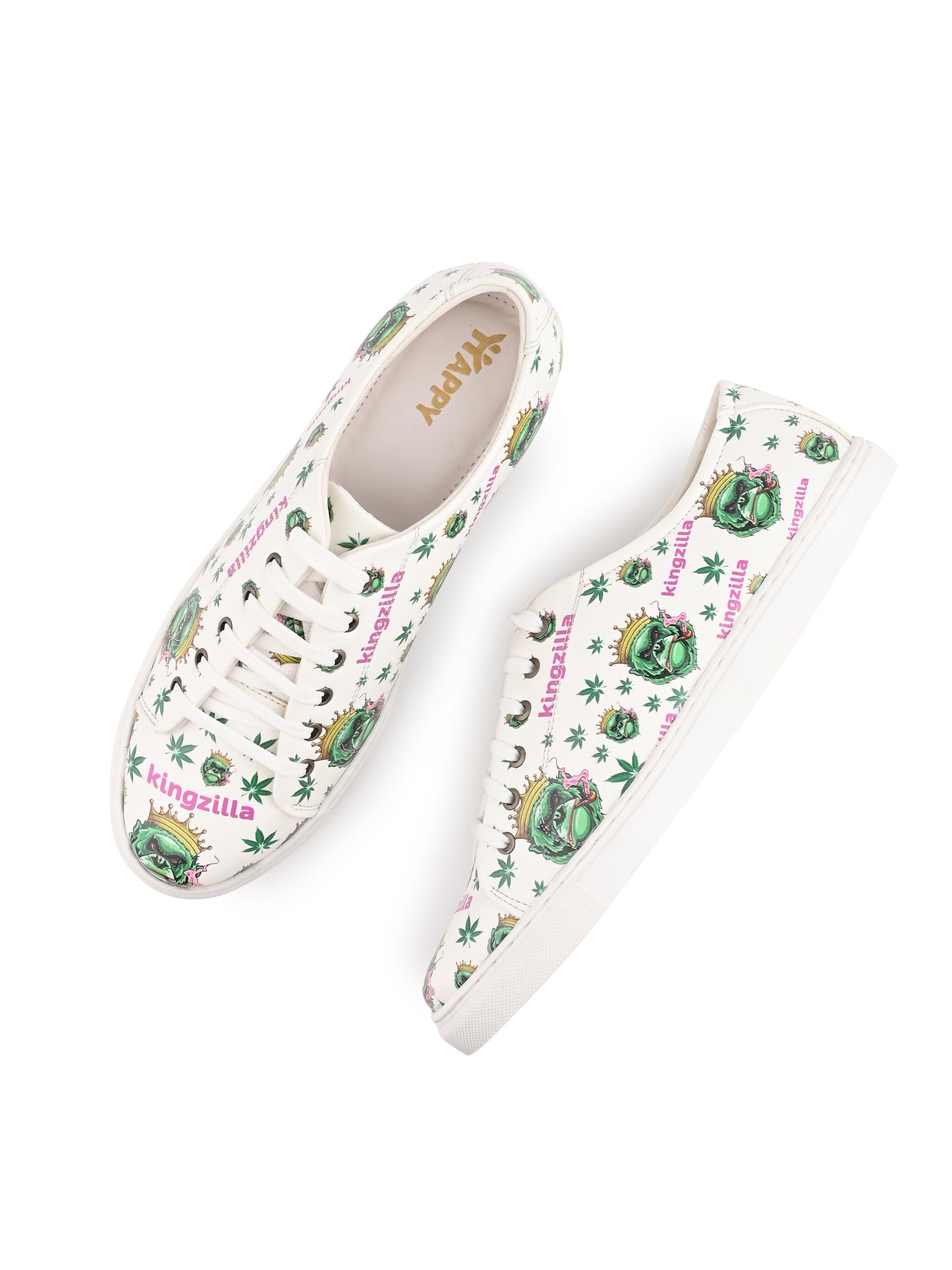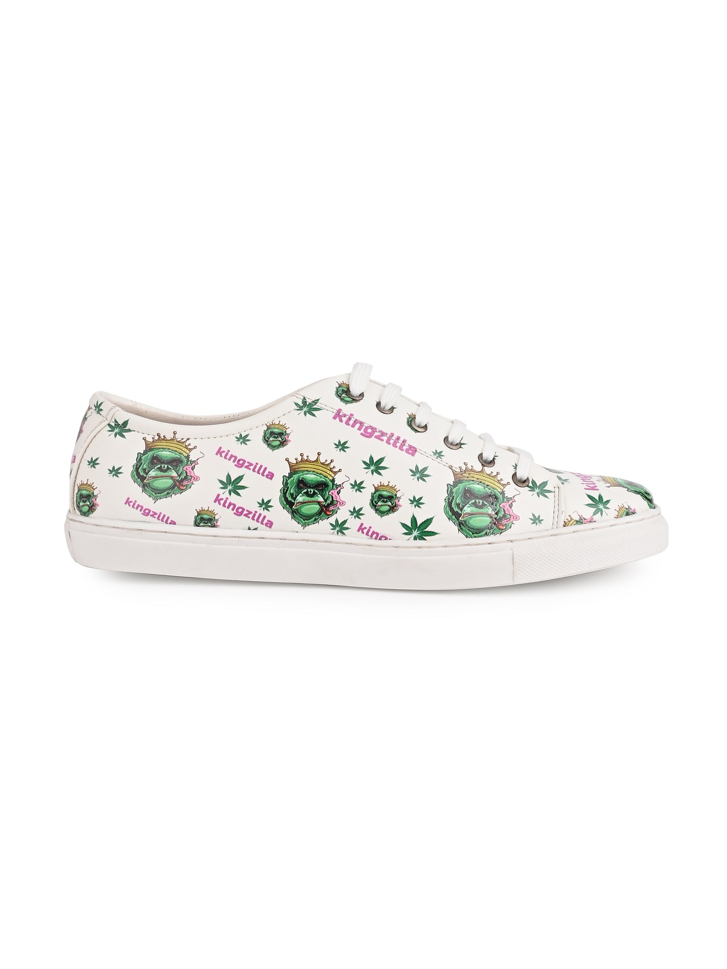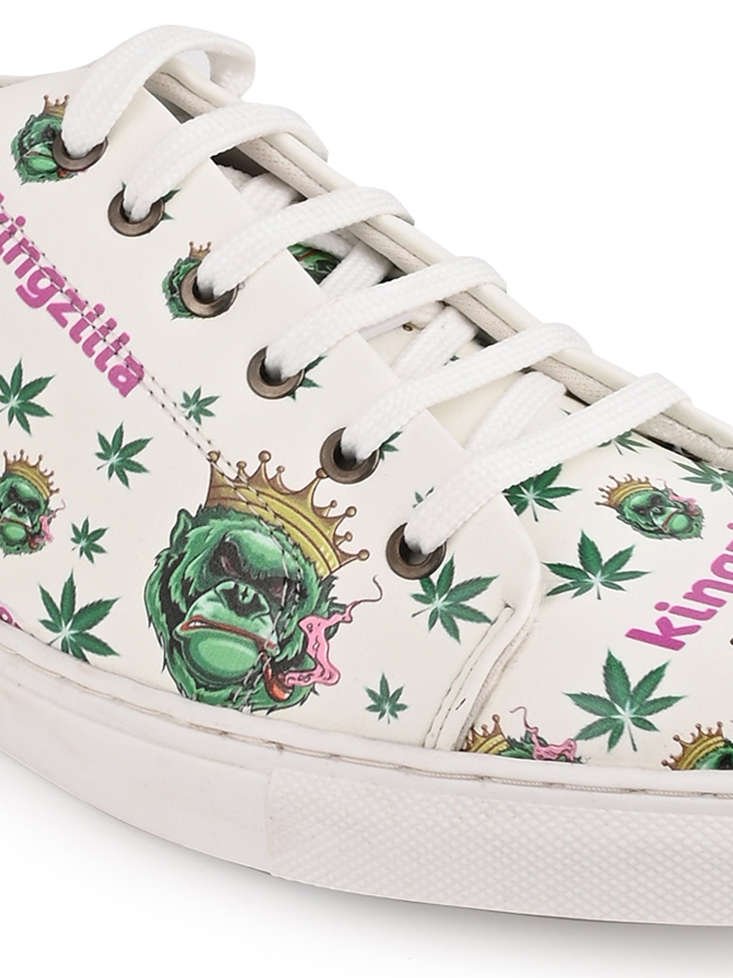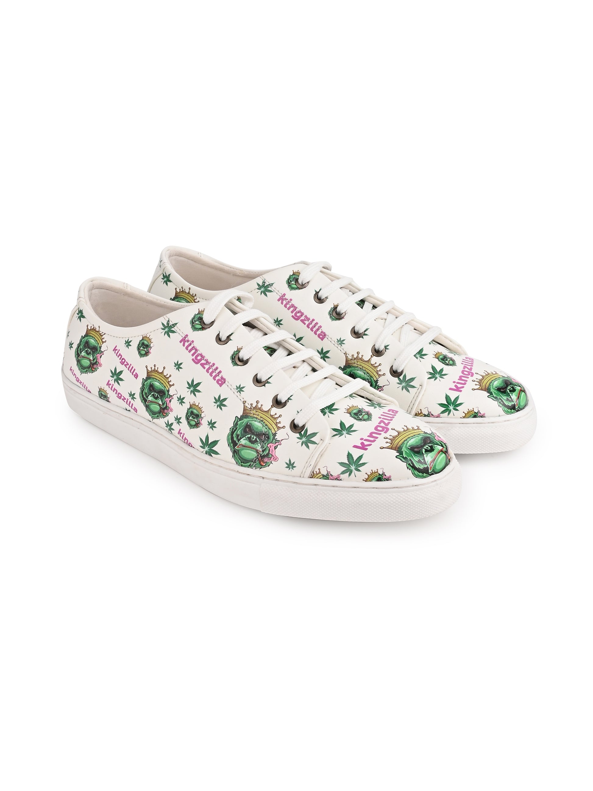 Kingzilla Weed Design Snow White Shoe - Printed Synthetic Vegan Leather Sizes