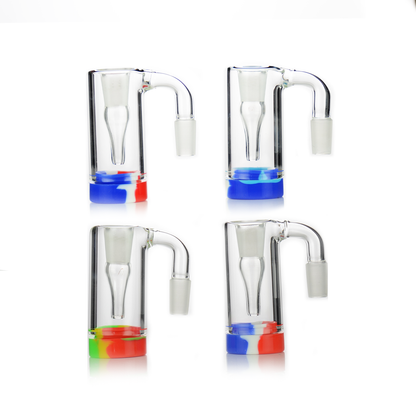 Elevate your smoking experience with this versatile 14mm 90° Ash Catcher Reclaimer. This bold attachment not only catches ash and debris before it hits your bong, but also reclaims valuable concentrates in its convenient silicone jar container. Perfect for those who refuse to compromise on both function and style. Fits standard 14mm joints at a 90° angle for optimal performance.