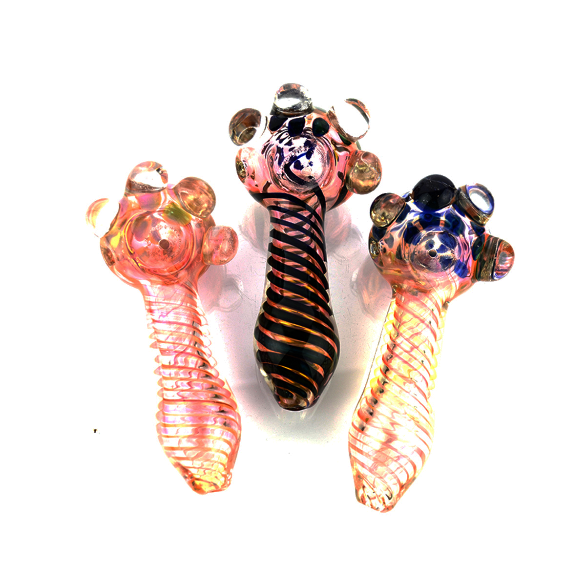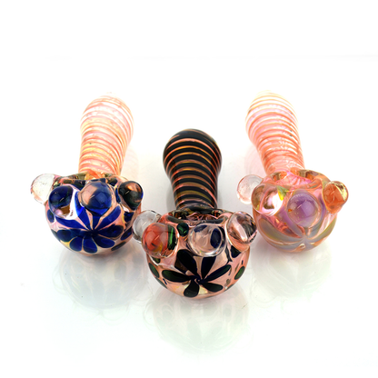 5" Gold Fume Hand Pipe With Swirling Art and Flower Head Design 200G