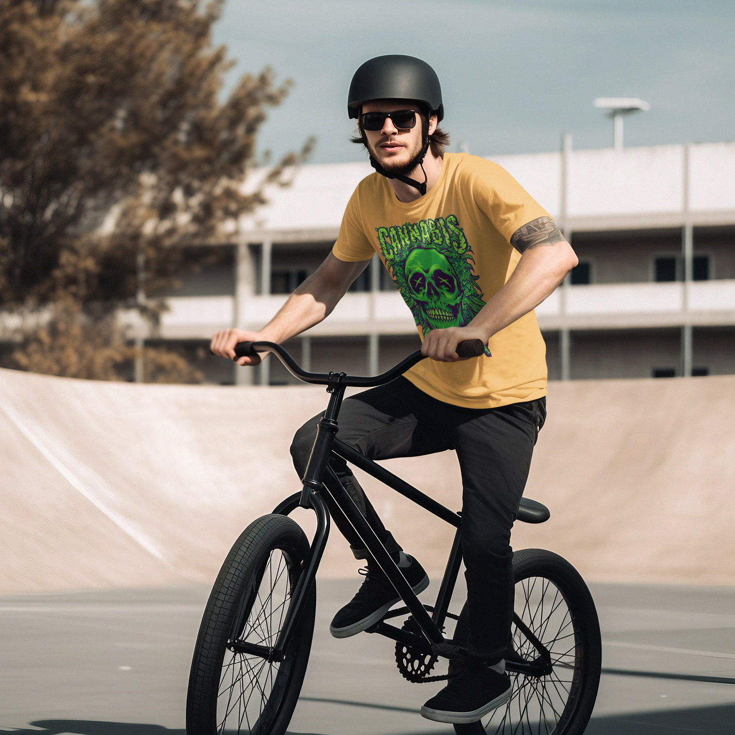 This black t-shirt features a printed cannabis skull design, made from 93% cotton and 7% elastic for a comfortable fit. Perfect for any cannabis enthusiast, this t-shirt offers a unique and stylish look. Made with high-quality materials, it's both durable and comfortable. Show off your love for cannabis with this one-of-a-kind t-shirt.